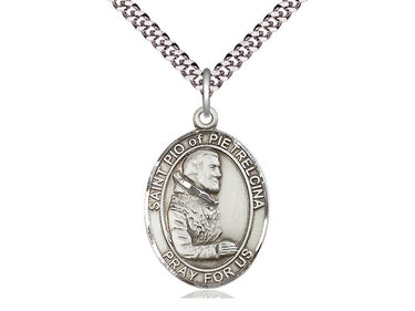 Sterling Silver St. Pio of Pietrelcina Pendant Necklace 1 x 3/4 - 24 Inch Chain