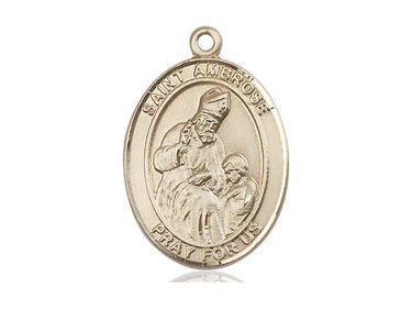 14kt Solid Gold St. Ambrose Medal 1 x 3/4