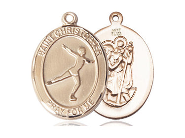 14kt Solid Gold St. Christopher/Figure Skating Medal 1 x 3/4