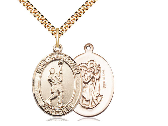 14kt Gold Filled St. Christopher/Lacrosse Pendant Necklace 1 x 3/4 - 24 Inch Chain