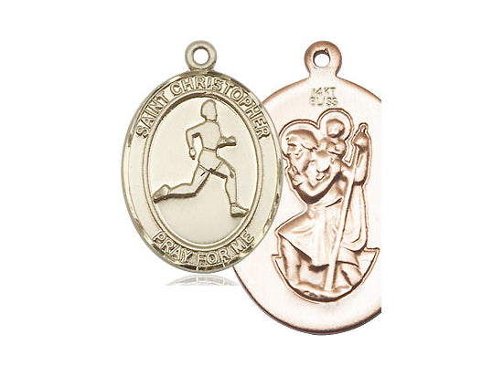 14kt Solid Gold St. Christopher/Track & Field Medal 1 x 3/4