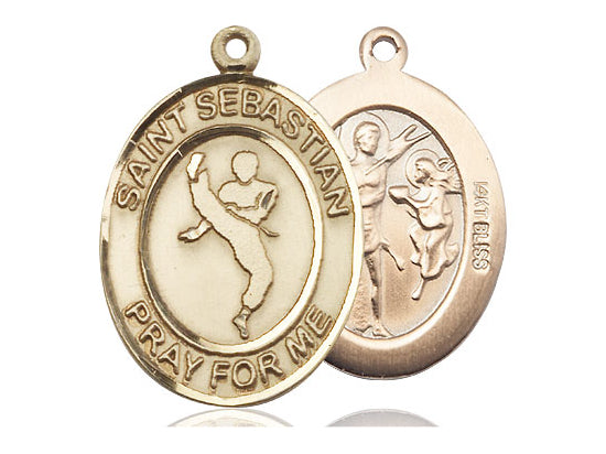Exquisite 14KT Gold Saint Sebastian/Martial Arts Pendant (1 x 3/4) on Chain with Lobster Clasp - Handmade in the USA by Bliss