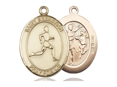 Embrace your faith with timeless elegance. This exquisite 14KT Gold Saint Sebastian/Track & Field Pendant, measuring 1 x 3/4, is meticulously handcrafted in the USA by Bliss, a renowned name in religious jewelry. The durable -inch 14KT Gold curb chain gracefully drapes with a secure lobster clasp for a comfortable, everyday wear. The is a patron saint of athletes, soldiers.