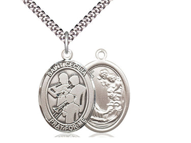 Embrace your faith with timeless elegance. This exquisite Sterling Silver Saint Cecilia / Marching Band Necklace, measuring 1 x 3/4, is meticulously handcrafted in the USA by Bliss, a renowned name in religious jewelry. The durable 24-inch Sterling Silver curb chain gracefully drapes with a secure lobster clasp for a comfortable, everyday wear. The is a patron saint of musicians, singers.