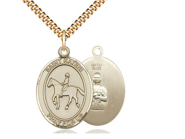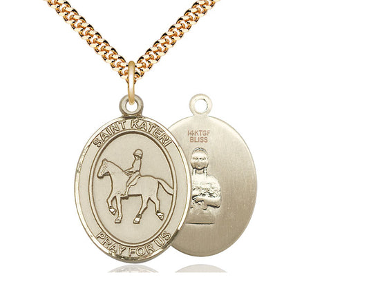 14kt Gold Filled St. Kateri / Equestrian Pendant Necklace 1 x 3/4 - 24 Inch Chain