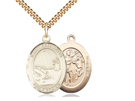 14kt Gold Filled St. Sebastian / Fishing Pendant Necklace 1 x 3/4 - 24 Inch Chain