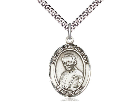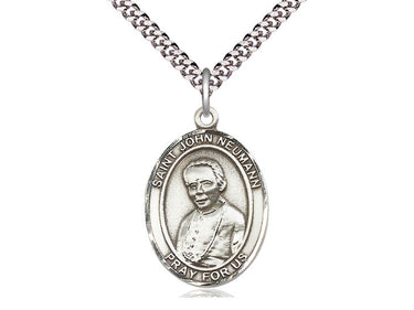 Sterling Silver St. John Neumann Pendant Necklace 1 x 3/4 - 24 Inch Chain