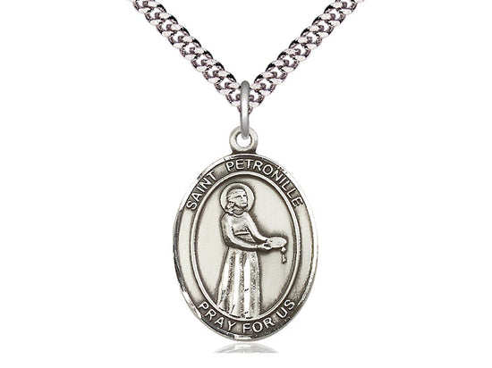 Sterling Silver St. Petronille Pendant Necklace 1 x 3/4 - 24 Inch Chain