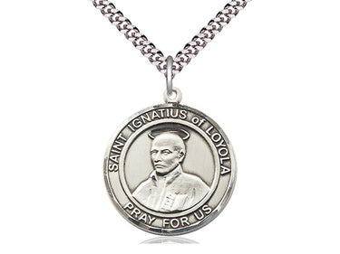 Sterling Silver St. Ignatius of Loyola Pendant Necklace 1 x 5/8 - 24 Inch Chain
