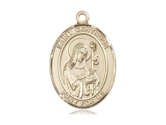 14kt Solid Gold St. Gertrude of Nivelles Medal 1 x 3/4