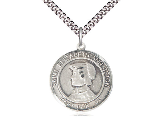 Sterling Silver St. Elizabeth Ann Seton Pendant Necklace 1 x 5/8 - 24 Inch Chain