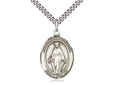 Sterling Silver Our Lady of Lebanon Pendant Necklace 1 x 3/4 - 24 Inch Chain