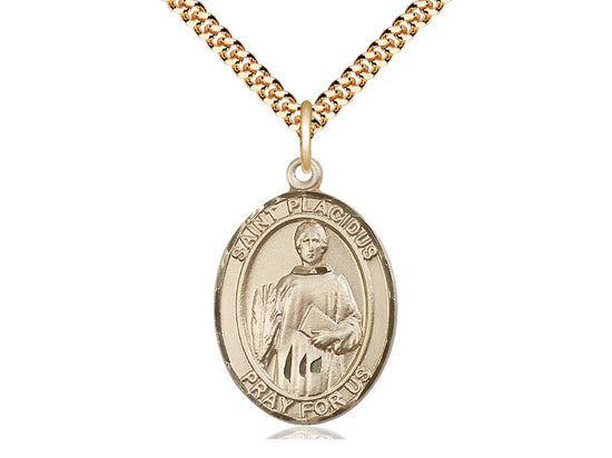 Exquisite Gold Filled Saint Placidus Necklace (1 x 3/4) on 24 Chain with Lobster Clasp - Handmade in the USA by Bliss