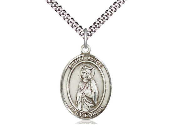 Sterling Silver St. Alice Pendant Necklace 1 x 3/4 - 24 Inch Chain