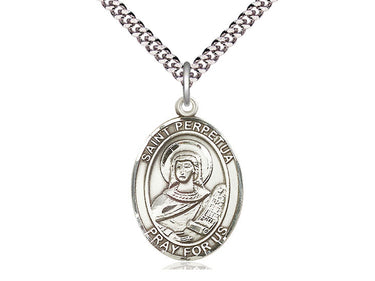 Sterling Silver St. Perpetua Pendant Necklace 1 x 3/4 - 24 Inch Chain