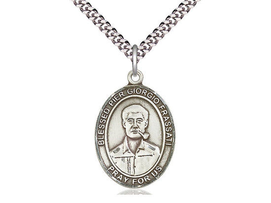 Sterling Silver Blessed Pier Giorgio Frassati Pend Necklace 1 x 3/4 - 24 Inch Chain