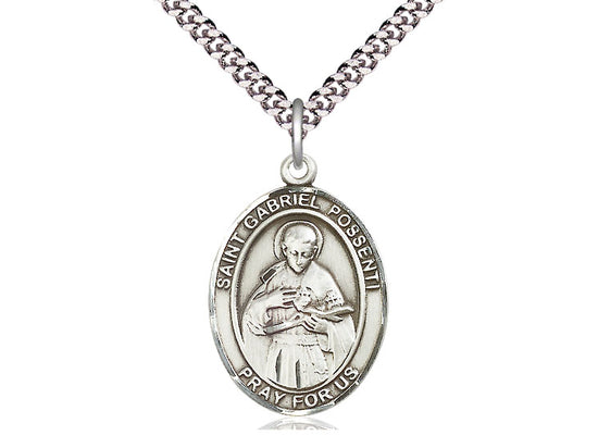 Sterling Silver St. Gabriel Possenti Pendant Necklace 1 x 3/4 - 24 Inch Chain