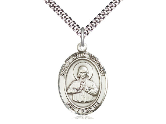 Sterling Silver St. John Vianney Pendant Necklace 1 x 3/4 - 24 Inch Chain