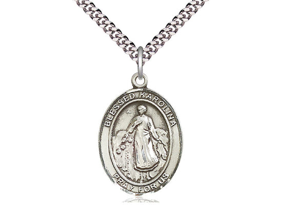 Sterling Silver Blessed Karolina Kozkowna Pendant Necklace 1 x 3/4 - 24 Inch Chain
