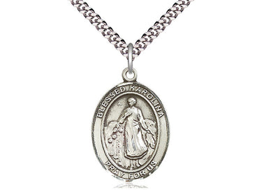 Embrace your faith with timeless elegance. This exquisite Sterling Silver Blessed Karolina Kozkowna Necklace, measuring 1 x 3/4, is meticulously handcrafted in the USA by Bliss, a renowned name in religious jewelry. The durable 24-inch Sterling Silver curb chain gracefully drapes with a secure lobster clasp for a comfortable, everyday wear. The Blessed Karolina Kozkowna is a patron saint of virgins, purity.