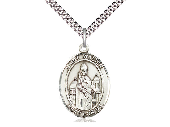 Sterling Silver St. Walter of Pontoise Pendant Necklace 1 x 3/4 - 24 Inch Chain