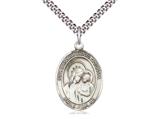 Sterling Silver Our Lady of Good Counsel Pendant Necklace 1 x 3/4 - 24 Inch Chain