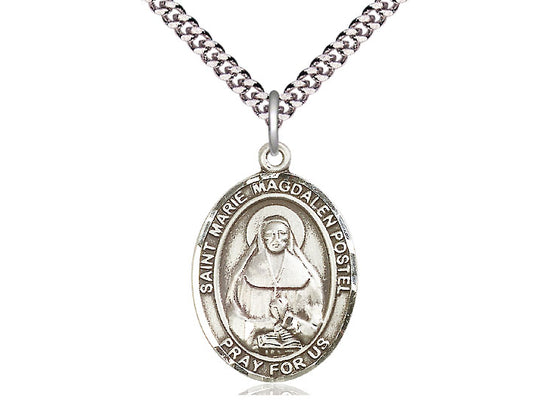 Sterling Silver Marie Magdalen Postel Pendant Necklace 1 x 3/4 - 24 Inch Chain