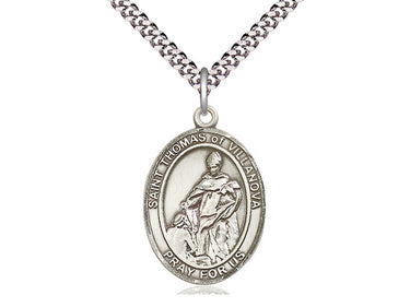 Sterling Silver St. Thomas of Villanova Pendant Necklace 1 x 3/4 - 24 Inch Chain