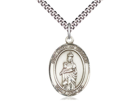 Sterling Silver Our Lady of Victory Pendant Necklace 1 x 3/4 - 24 Inch Chain