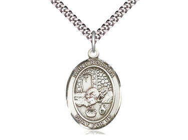 Sterling Silver St. Rosalia Pendant Necklace 1 x 3/4 - 24 Inch Chain