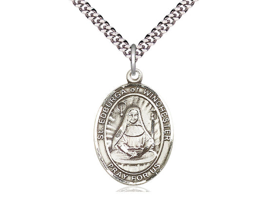 Sterling Silver St. Edburga of Winchester Pendant Necklace 1 x 3/4 - 24 Inch Chain