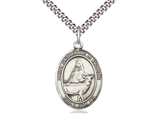 Sterling Silver St. Catherine of Sweden Pendant Necklace 1 x 3/4 - 24 Inch Chain