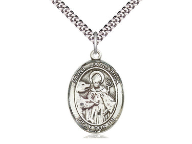 Sterling Silver St. Januarius Pendant Necklace 1 x 3/4 - 24 Inch Chain
