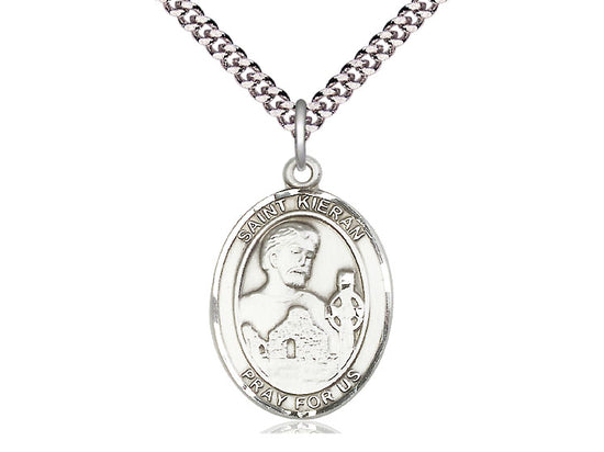 Sterling Silver St. Kieran Pendant Necklace 1 x 3/4 - 24 Inch Chain