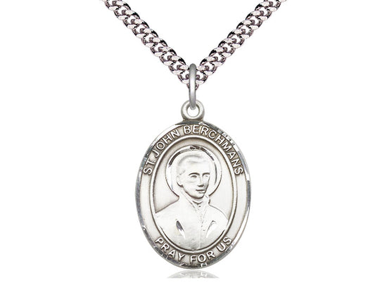 Sterling Silver St. John Berchmans Pendant Necklace 1 x 3/4 - 24 Inch Chain