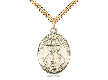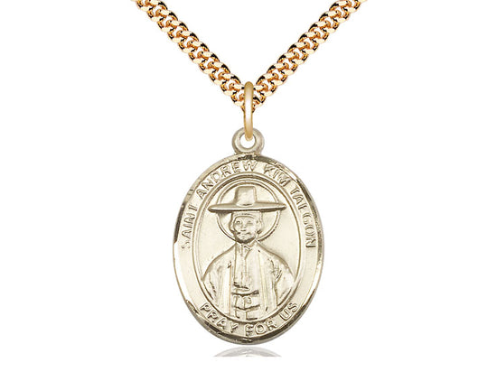 14kt Gold Filled St. Andrew Kim Taegon Pendant Necklace 1 x 3/4 - 24 Inch Chain