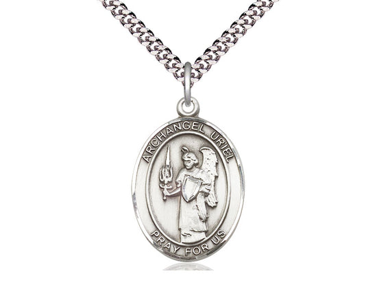 Sterling Silver St. Uriel Pendant Necklace 1 x 3/4 - 24 Inch Chain