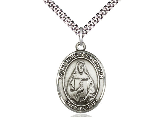 Sterling Silver St. Theodore Guerin Pendant Necklace 1 x 3/4 - 24 Inch Chain