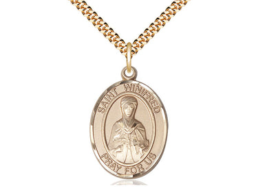 14kt Gold Filled St. Winifred of Wales Pendant Necklace 1 x 3/4 - 24 Inch Chain