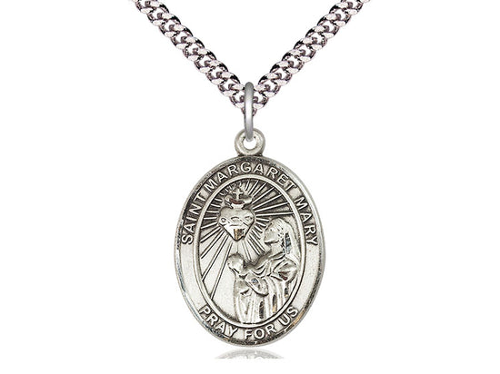 Sterling Silver St. Margaret Mary Alacoque Pendant Necklace 1 x 3/4 - 24 Inch Chain