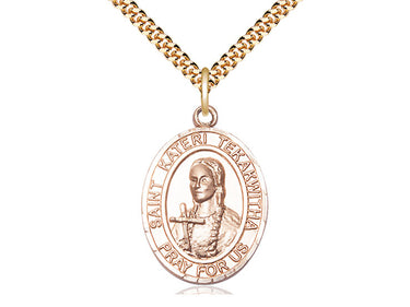 14kt Gold Filled St. Kateri Tekakwitha Pendant Necklace 1 x 3/4 - 24 Inch Chain