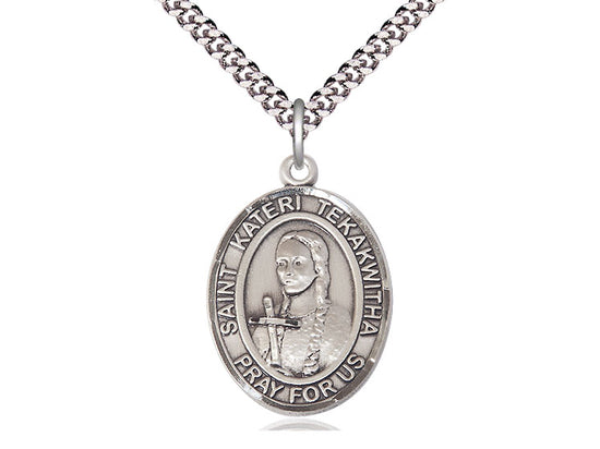 Sterling Silver St. Kateri Tekakwitha Pendant Necklace 1 x 3/4 - 24 Inch Chain