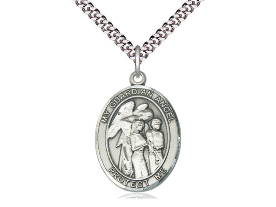 Sterling Silver Guardian Angel w/Children Pendant Necklace 1 x 3/4 - 24 Inch Chain