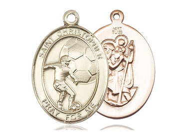 14kt Solid Gold St. Christopher/Soccer Medal 1 x 3/4