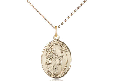 Embrace your faith with timeless elegance. This exquisite Gold Filled Saint Augustine Necklace, measuring 3/4 x 1/2, is meticulously handcrafted in the USA by Bliss, a renowned name in religious jewelry. The durable 18-inch Gold Filled curb chain gracefully drapes with a secure lobster clasp for a comfortable, everyday wear. The Saint Augustine of Hippo is a patron saint of theologians, sore eyes.