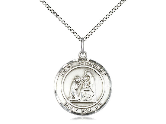 Sterling Silver St. Catherine of Siena Pendant Necklace 3/4 x 5/8 - 18 Inch Chain