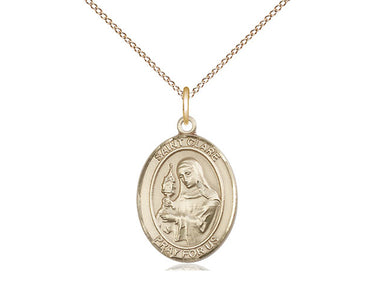 14kt Gold Filled St. Clare of Assisi Pendant Necklace 3/4 x 1/2 - 18 Inch Chain