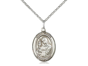 Sterling Silver St. Clare of Assisi Pendant Necklace 3/4 x 1/2 - 18 Inch Chain