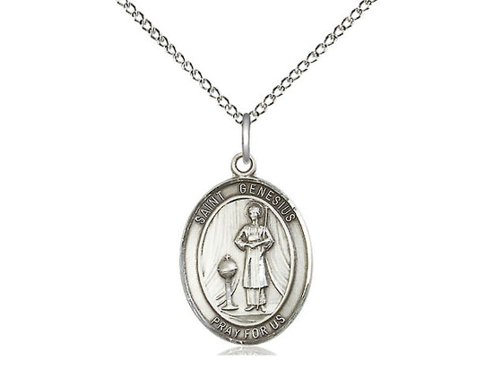 Sterling Silver St. Genesius of Rome Pendant Necklace 3/4 x 1/2 - 18 Inch Chain