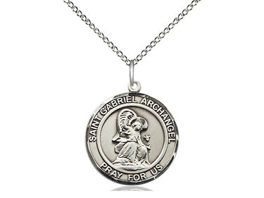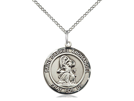 Sterling Silver St. Gabriel the Archangel Pendant Necklace 3/4 x 5/8 - 18 Inch Chain